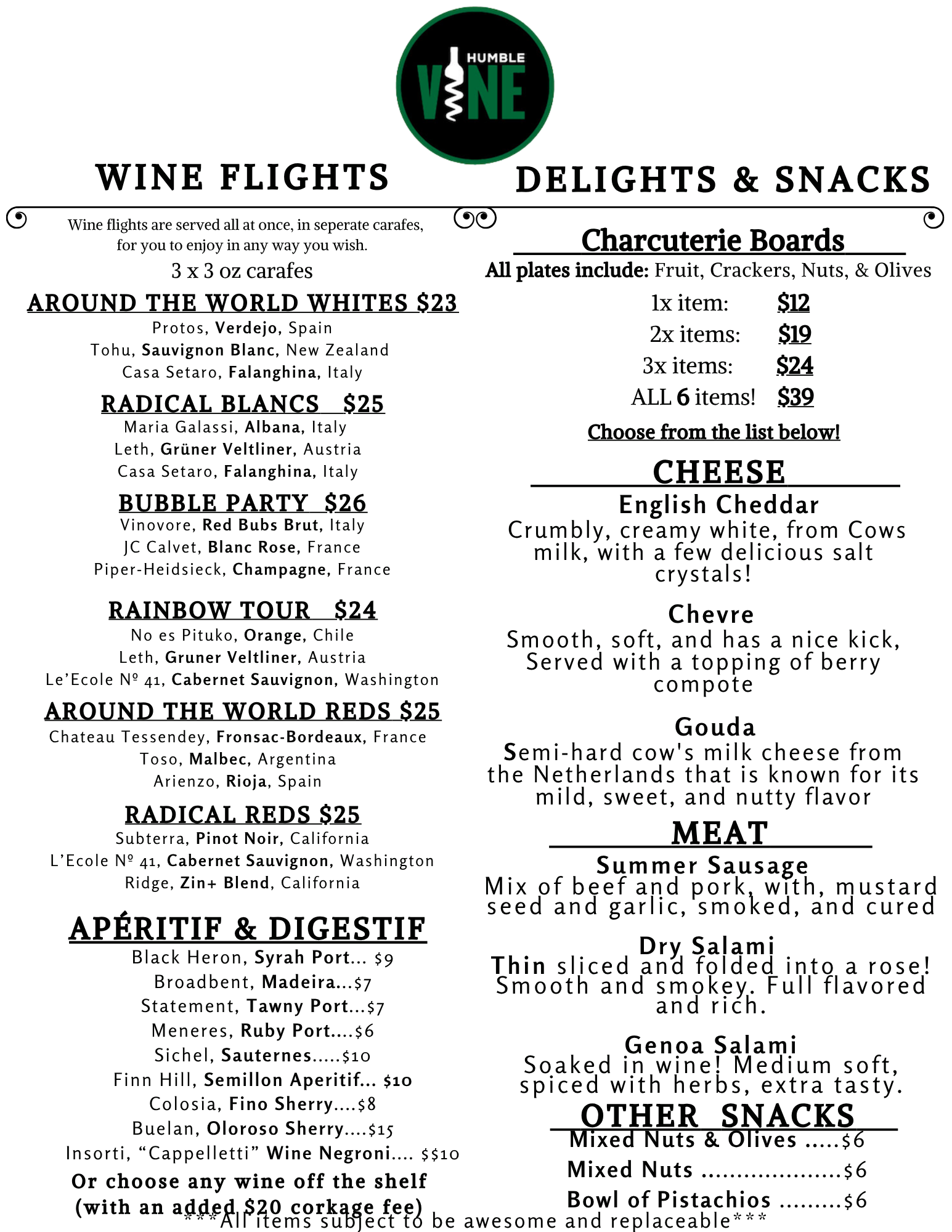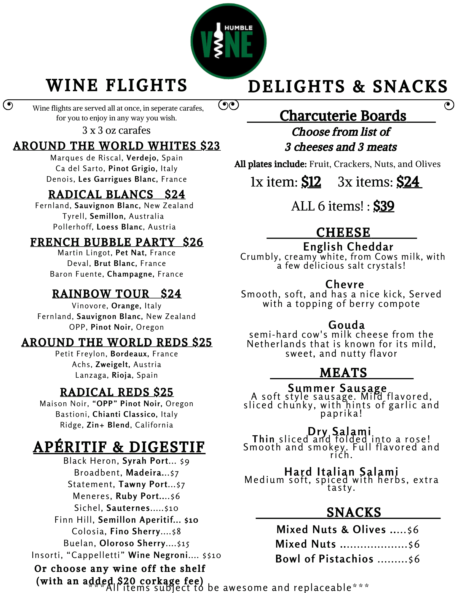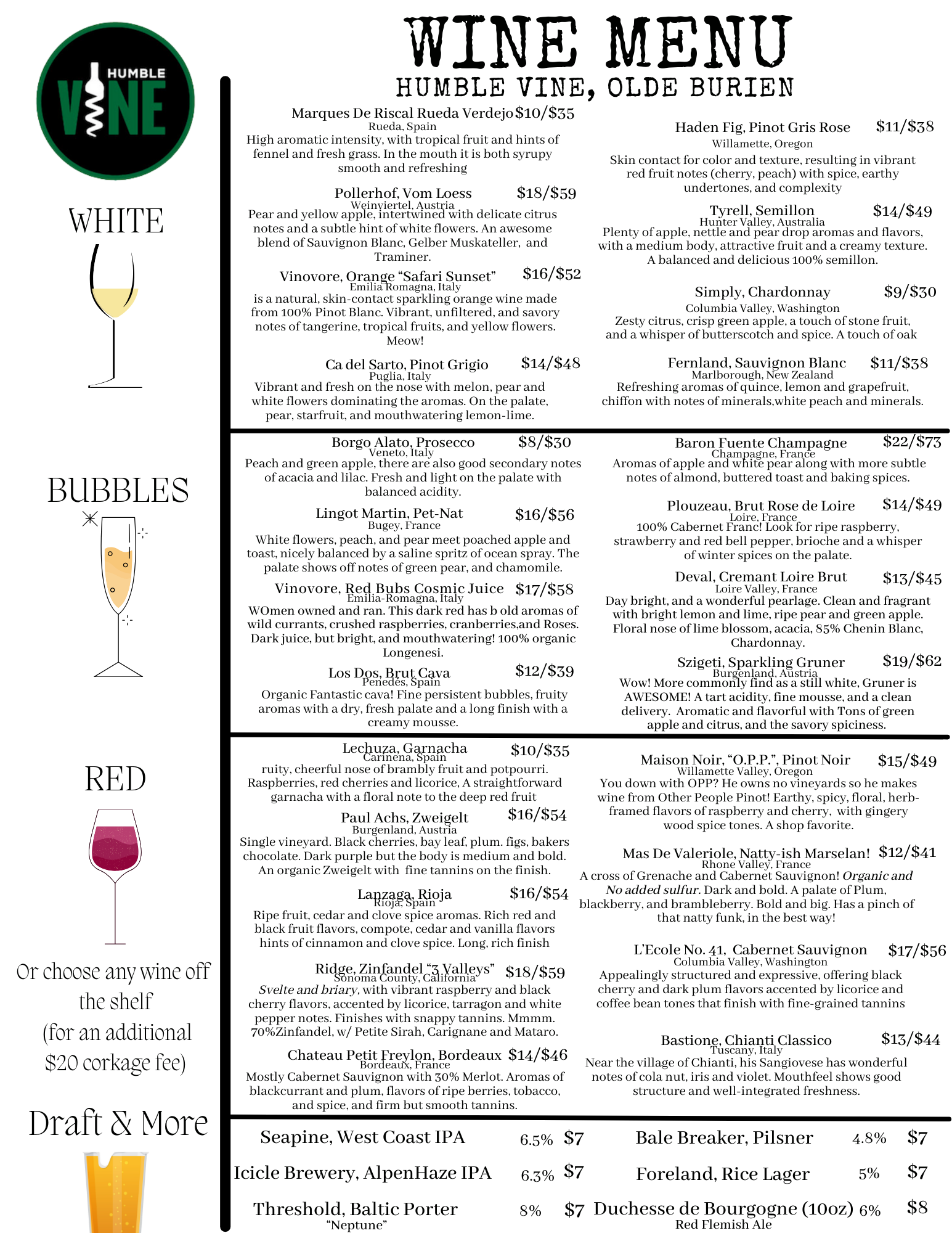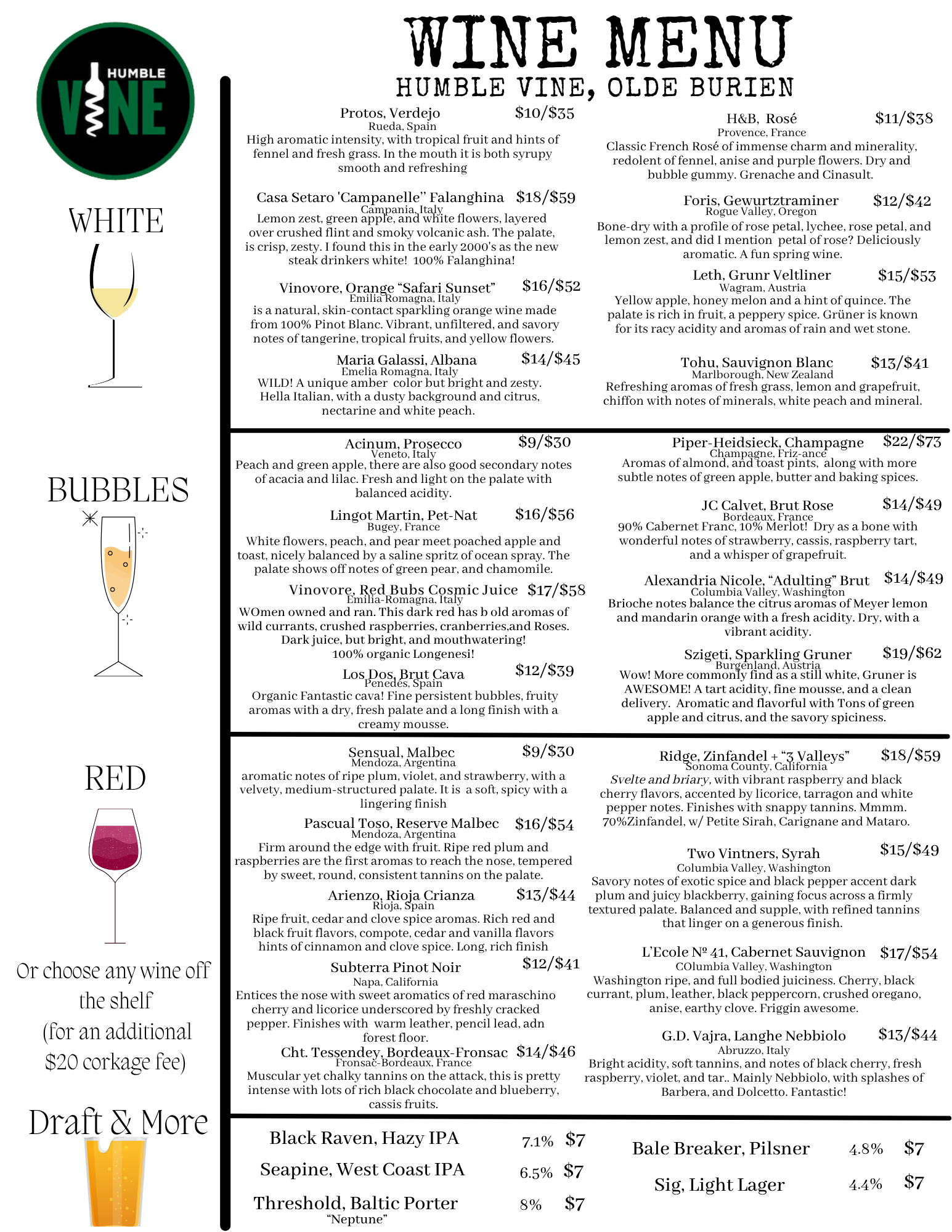 Our wine and tasting menus change depending on season and availability - guests can always be guaranteed amazing reds, whites, sparkles, beer and cider will be available, as well as, custom flights